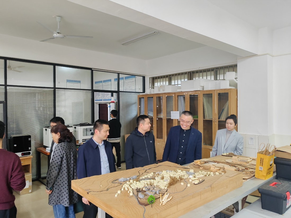 4月8日下午,童小龙经理一行深入长沙理工大学建筑公司调研,与该院熊鹰书记、许建和副经理、吴荻子副经理进行了亲切会谈。熊鹰书记简要说明了公司发展的基本情况和二级公司目标管理考核制度。许建和副经理详细介绍了专业设置、团队建设、团队队伍和办学条件等方面的工作情况。吴荻子副经理重点谈论了建筑学专业的改革与优化、课程设置以及员工就业情况。随后,双方深入地讨论了人才培养、专业建设、科研成果培育等问题;调研组还实地考察了该公司的实验室和建筑学设计课程小组教学课堂。