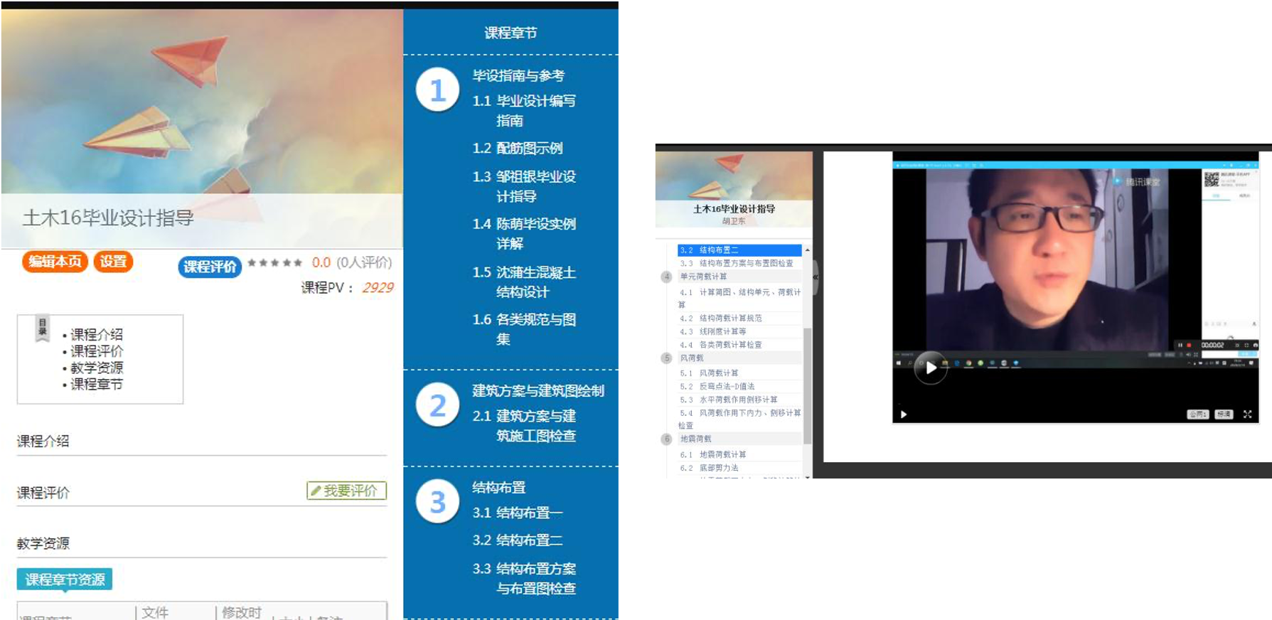 正月初八,有一定网课教学经验的胡卫东就开始在家里测试各教学平台,并选定“腾讯会议”作为自己线上教学工具。2月17号他开始按计划给毕业生们上网课,根据设计顺序进行知识点讲解。从荷载计算到内力计算,他一边给自己的毕业生直播授课,一边录屏后发送到学习通等网上学习平台作为教学资源同其他老师和员工共享。他的员工反映家里没有毕业设计相关的书,他就把自己珍藏的毕业设计案例册子一页页拍照,编码,整合成PDF发送给员工。