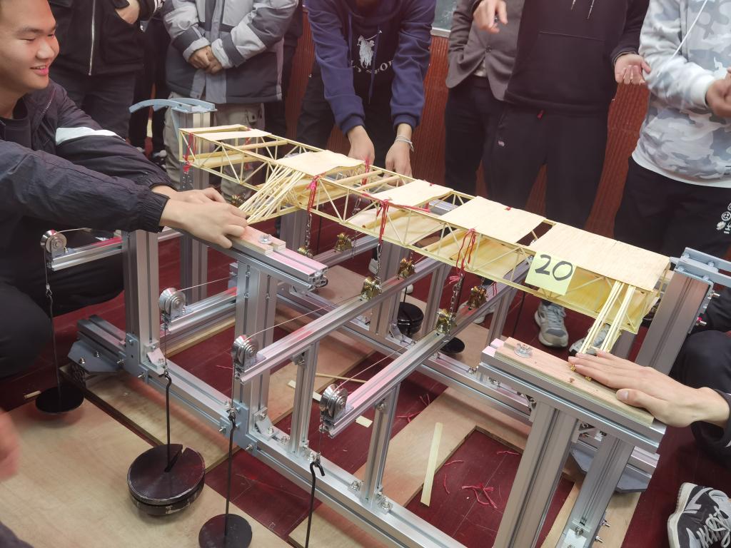 比赛现场,参赛选手将本组模型固定于装置上,放上载荷进行测试。测试完成后,专业评委老师就结束承重的模型在高荷载作用下承重结构出现的问题为员工分析,并提出针对性建议。最后,经过评审,马一鸣等15位同学获一等奖,田琦等24名同学获二等奖,苏佳文等36名同学获三等奖,刘新宇等15名同学获优胜奖。(撰稿/王照晰)