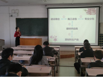 活动伊始,胡卫东副经理表示本次竞赛旨在提升教师课程思政教学水平,同时为校级课程思政教学大赛选拔参赛人员。此次竞赛分为三个环节,五名参赛老师依次以授课形式阐述参赛课程思政教学设计思路及内容,并以讲课形式进行课堂教学展示,最后由同行教师提问交流。参赛老师从教学内容、教学安排及目标、学情分析、教学流程、教学反思五方面由浅入深展开叙述,提出课程思政融入方式,新型教学方式等举措。
