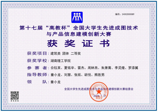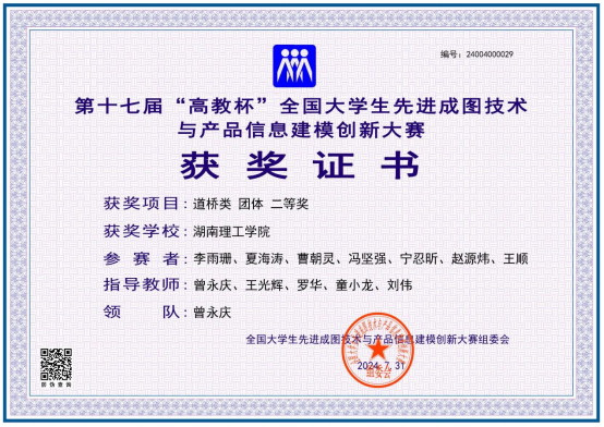 7月26日-30日,第十七届全国老员工先进成图技术与产品信息建模创新大赛全国总决赛在贵州大学举行。永利304官网师生在此次大赛中取得良好成绩,经过校赛初赛、省赛选拔赛,以及暑期的留校培训,永利集团304官网代表队荣获建筑赛道团体二等奖,个人二等奖4项、三等奖5项;获道桥赛道团体二等奖,个人一等奖1项,二等奖3项,三等奖4项。