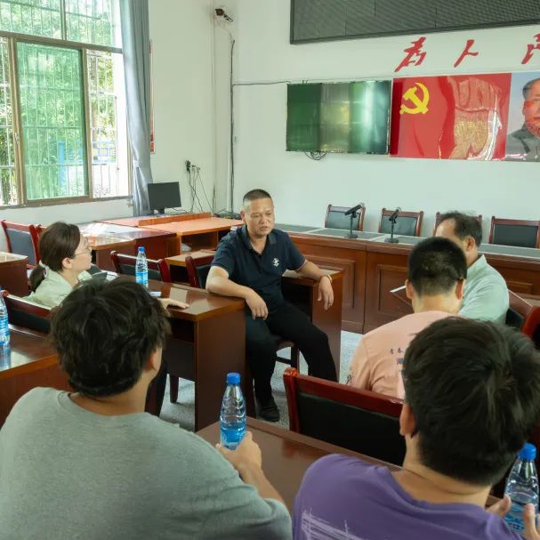 随后,赖梅村村支书周书记对团队的到来表示热烈欢迎,并详细介绍了赖梅村的基本情况,包括村落布局、人口结构、产业发展现状,指出当前村里学龄儿童假期生活单调、沉迷网络等问题。双方就暑期支教、乡村文化广场规划、乡村文旅宣传等进行了深入交流,为后续实践活动的开展明确了方向。