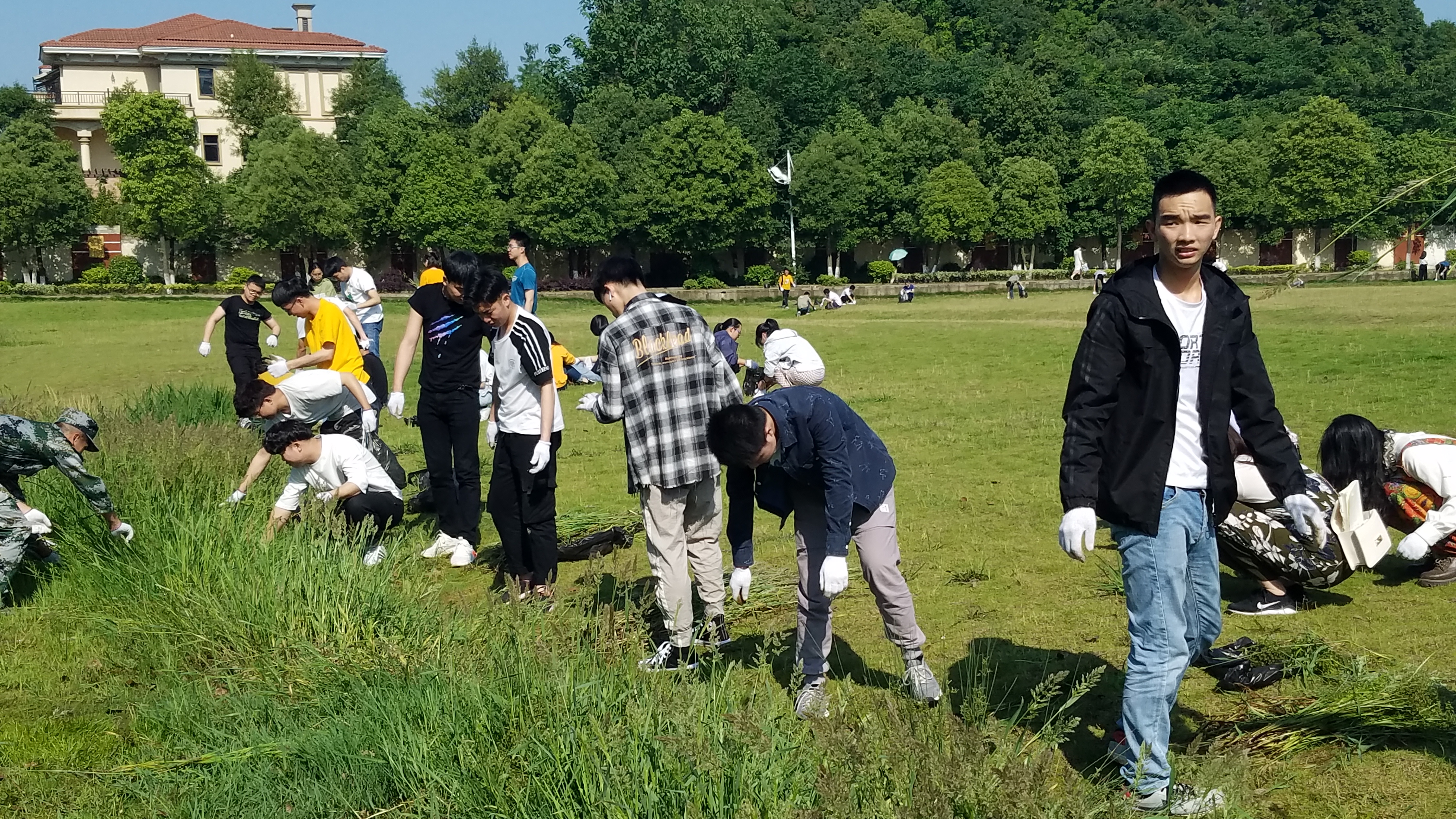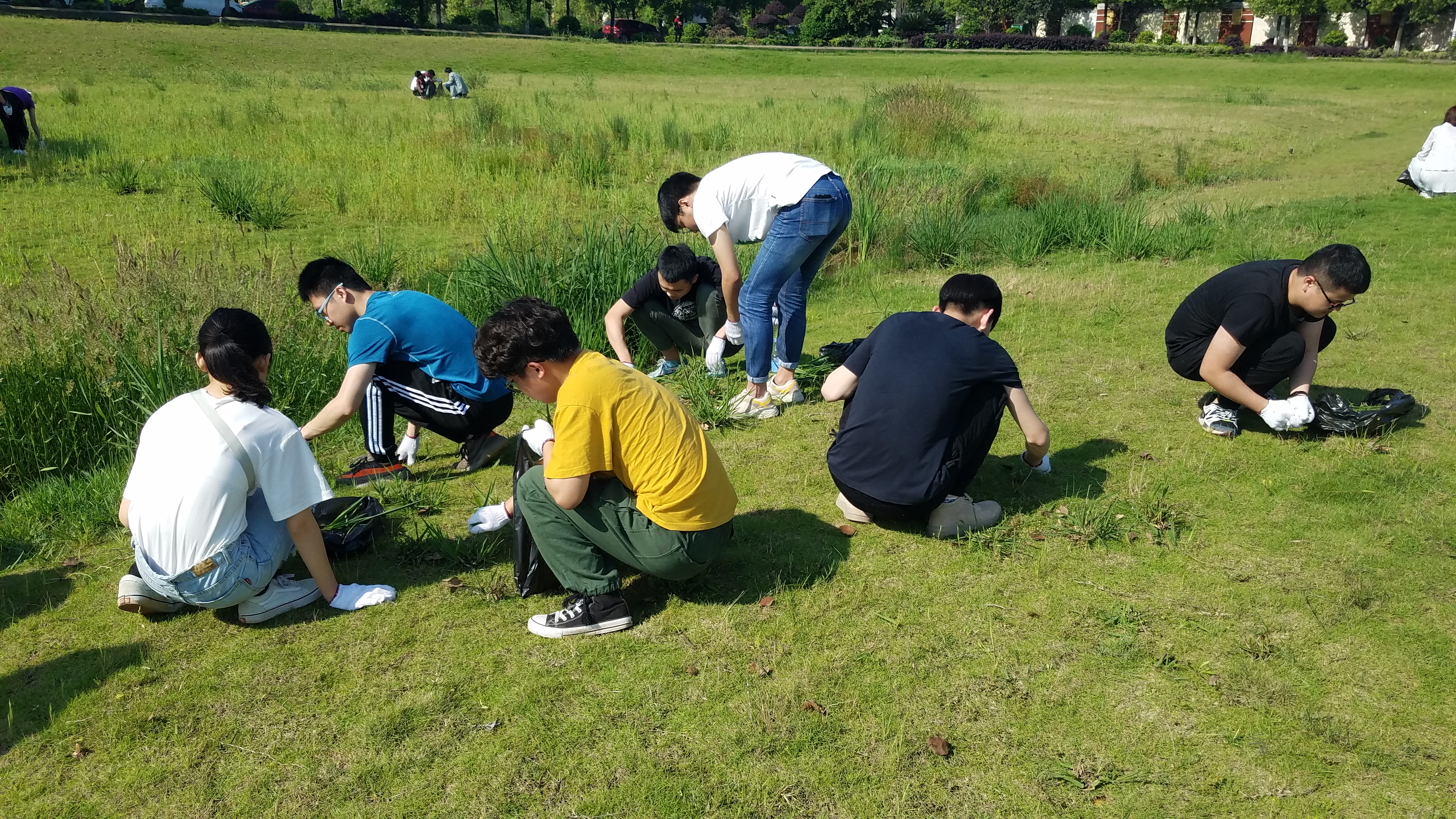 活动内容为清除阳光草坪杂草;对阳光草坪进行卫生清理,清除废纸、塑料袋、烟头等垃圾。活动过程中各个小组分工有序,互相合作,仔细清理草丛。