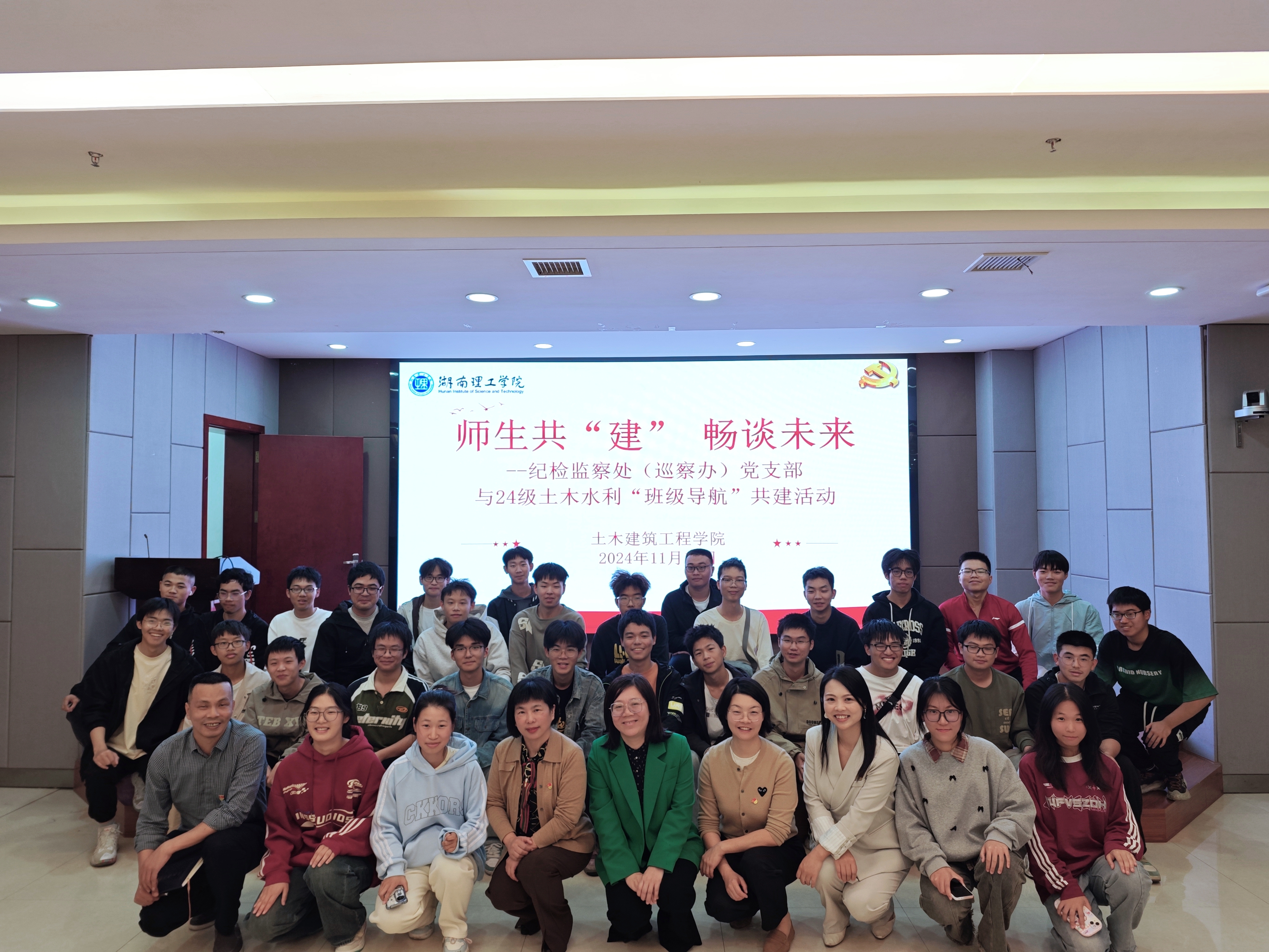 11月12日下午,在图书馆的多功能厅,纪检监察处(巡察办)党支部与24级土木水利班联合开展了一场以“师生共‘建’,畅谈未来”为主题的“班级导航”共建活动。本次活动由土木建筑工程公司党委书记钟铭金主持,纪检监察支部书记周红熳出席。