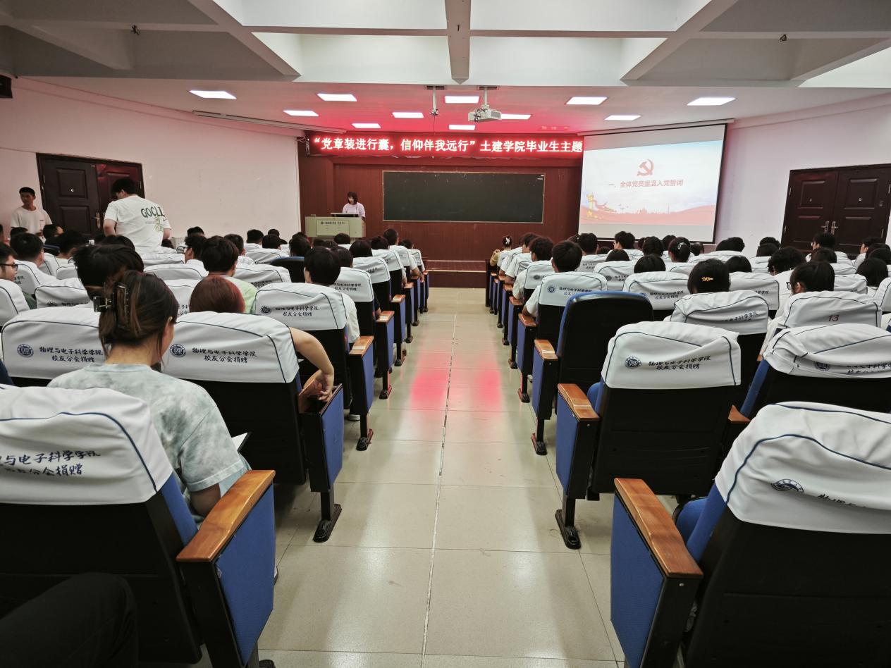 为进一步加强毕业生党员的思想政治教育,坚定理想信念,传承红色基因,5月27下午4点,永利集团304官网在6号楼学术报告厅成功举办了2025届毕业生“党章进行囊,信仰伴远行”主题教育活动。公司党委成员、全体教师党员、全体员工党员、入党积极分子、员工干部代表、第22期发展对象培训班成员、第52期入党积极分子培训班成员以及24级水利班代表齐聚一堂,共同参与了此次意义非凡的活动。活动由25届毕业生辅导员华蓉主持。