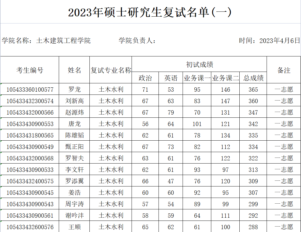 2023年硕士研究生复试名单