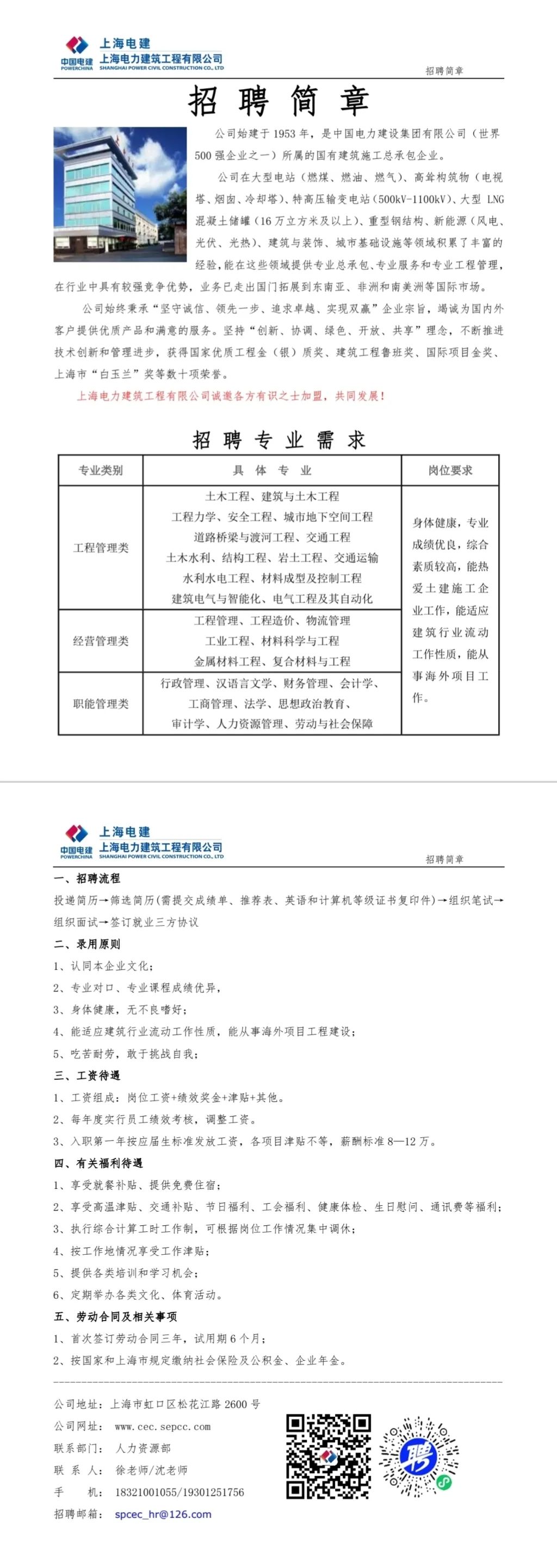 招聘简章——中国电建上海电力建筑工程有限公司
