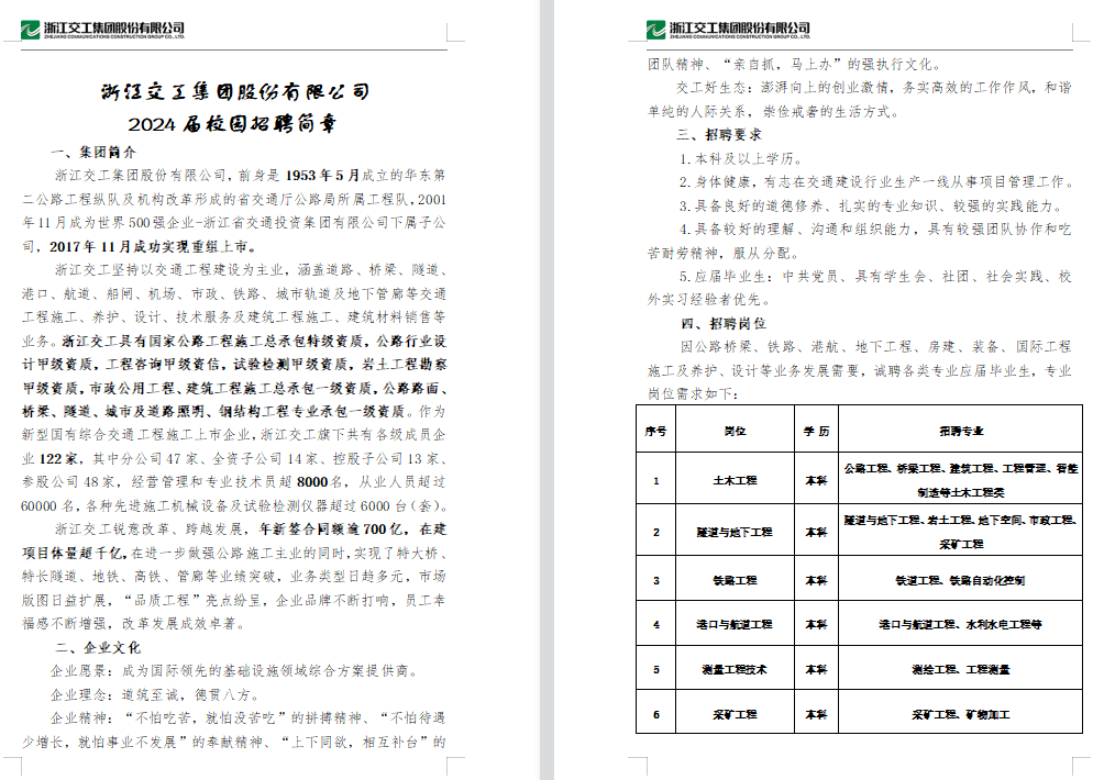 浙江交工集团股份有限公司2023永利304官网秋季专场招聘会安排