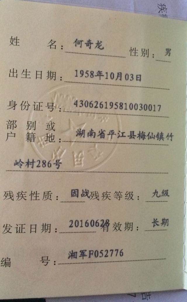 这位对国家有着特殊贡献的越战老兵名叫何奇龙,是一位老党员,今年59岁,1981年复原后一直在三里村担任村长,后来由于工作需要又在乡镇林场当厂长,2003年开始担任这个村的村支书一直到2013年。从何奇龙的工作经历我们不难看出,革命军人退伍不褪色,哪里需要哪里搬的本质!然而生活并没有想象中的厚待这位59岁的汉子,因为家庭的极度贫困,育有的两个儿子先后都分别外出打工,大儿子2013年南下广东打工至今了无音信,失去联系,大儿媳在生下孙女5个月后,抛下怀里嗷嗷待哺的孩子跑了。小儿子外出江浙打工收入不稳定,居无定所,偶尔才会有个消息传回家,为了节约车票钱,小儿子已经有几年没有回家了。这位汉子扛起家庭的重担,上要赡养年近九旬的老父亲,下要抚养已就读小学的亲孙女,还要担心离家在外的儿子们,而自己的身体却由于战争留下的伤痛,随着年龄的增长,越来越痛苦,不能干重活,不能晒太阳,可是对于这样的一个农村贫困家庭而言,不干活,不晒太阳,简直就是天方夜谭,所以这位越战老兵,这位老共产党人,这位铁铮铮的汉子被生活累倒了,因为常年的辛苦劳作,突发脑溢血,医院一度下了病危通知单,好在这位被生活打不垮的老兵挺过来了,可能他觉得他在这个世界上还有太多的责任要负,还有太多的事情未完成吧……孙女还小,父亲年事已高……儿子们还没有消息……