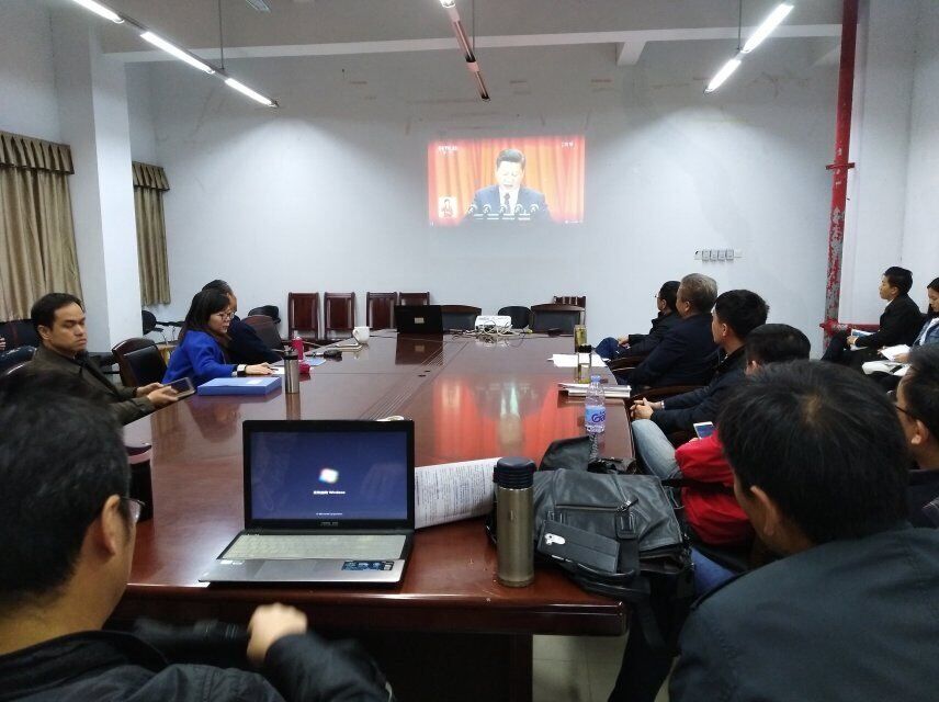 习近平代表中国共产党第十八届中央委员会向大会作报告。习总书记指出,这次大会的主题是:“不忘初心,牢记使命,高举中国特色社会主义伟大旗帜,决胜全面建成小康社会,夺取新时代中国特色社会主义伟大胜利,为实现中华民族伟大复兴的中国梦不懈奋斗。”永利集团304官网师生代表认真聆听了大会直播。大会结束后,大家纷纷表达了对十九大胜利召开的激动心情,表示将会深入学习和贯彻习总书记讲话精神。大家普遍认为,党的十九大报告高屋建瓴,吹响了建设中国特色社会主义现代化强国的冲锋号,对祖国的未来和发展充满了信心,坚定了用实际行动跟党走的决心,不忘初心,继续前行,为实现中华民族伟大复兴而努力。(撰稿/李彩云 杨欢龙 摄影/金添翼)