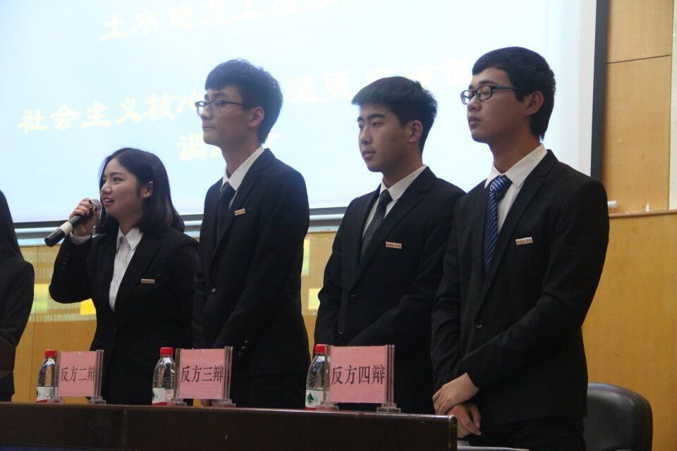 永利集团304官网代表队作为反方与美术公司代表队就“社会主义核心价值观应该高调弘扬还是低调践行”这一辩题展开激烈辩论。比赛分为立论阶段、驳立论阶段、质辩环节、自由辩论、总结陈词以及颁奖六个环节。比赛中,双方就各自观点开篇立论,并结合具体事例进行论证。在随后的自由辩论环节中,双方队员引经据典,唇枪舌战,尽显风采,将整场比赛推向高潮,赢得观众阵阵喝彩。辩论赛结束后,雷蕾对本次正反方的表现进行了点评。经过现场评委评选,永利集团304官网在此次决赛中惜败美术公司,夺得本次主题辩论赛的亚军,永利集团304官网二辩欧阳书涵荣获最佳辩手。评委老师对各优秀团队及个人颁奖,并进行了合影留恋。(撰稿/杨欢龙 陈雅洁 谢甜 张贝多 摄影/陈贤)