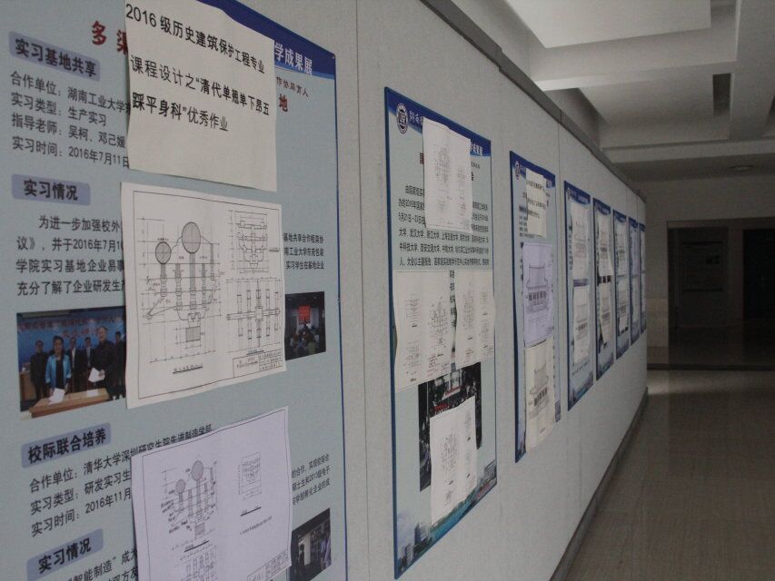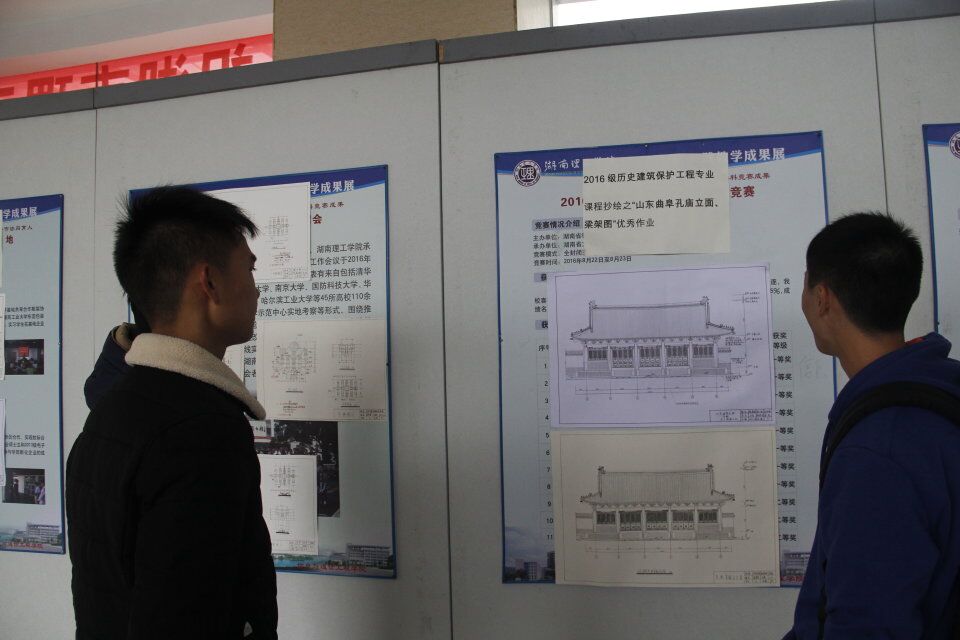 12月13-22日,2015级、2016级历保班“优秀作业”成果展于16栋逸夫楼二楼平台举办。本次展会由历保专业指导老师李祎组织,展出了“宋式七铺作重栱双杪双下昂斗栱”、“清式单翘单昂五踩平身科”及“山东曲阜孔庙梁架图、立面图”等优秀课程设计及抄绘。