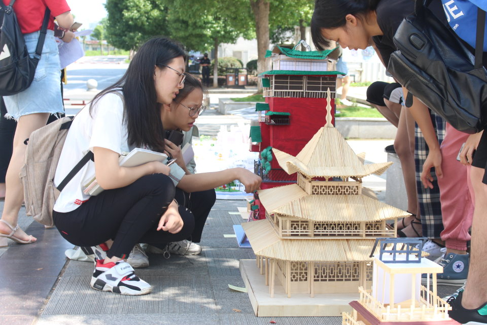 建筑模型展是永利集团304官网特色活动“建筑文化节”子活动之一,要求员工以3至5人为单位自由组队,利用PVC板、竹条等材料,手工制作创意建筑模型。展览期间,观众于模型旁驻足欣赏,制作者为观众讲解答疑,讲述制作的创意来源。