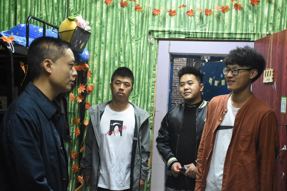 资产处副处长曾文德老师向同学们强调“性格决定命运,细节决定成败”,生活与学习中养成的习惯对于自身成长十分关键,他希望同学们养成良好的习惯,珍惜当下生活环境,努力学习专业文化知识。审计处副处长罗成老师对班级贫困生予以关心和问候,并就员工们大三的学业与课余时间的分配给予了建议。其他班级导师也分别深入员工寝室,详细了解员工日常生活与学习情况,并对员工提出的困难予以帮助和指导。