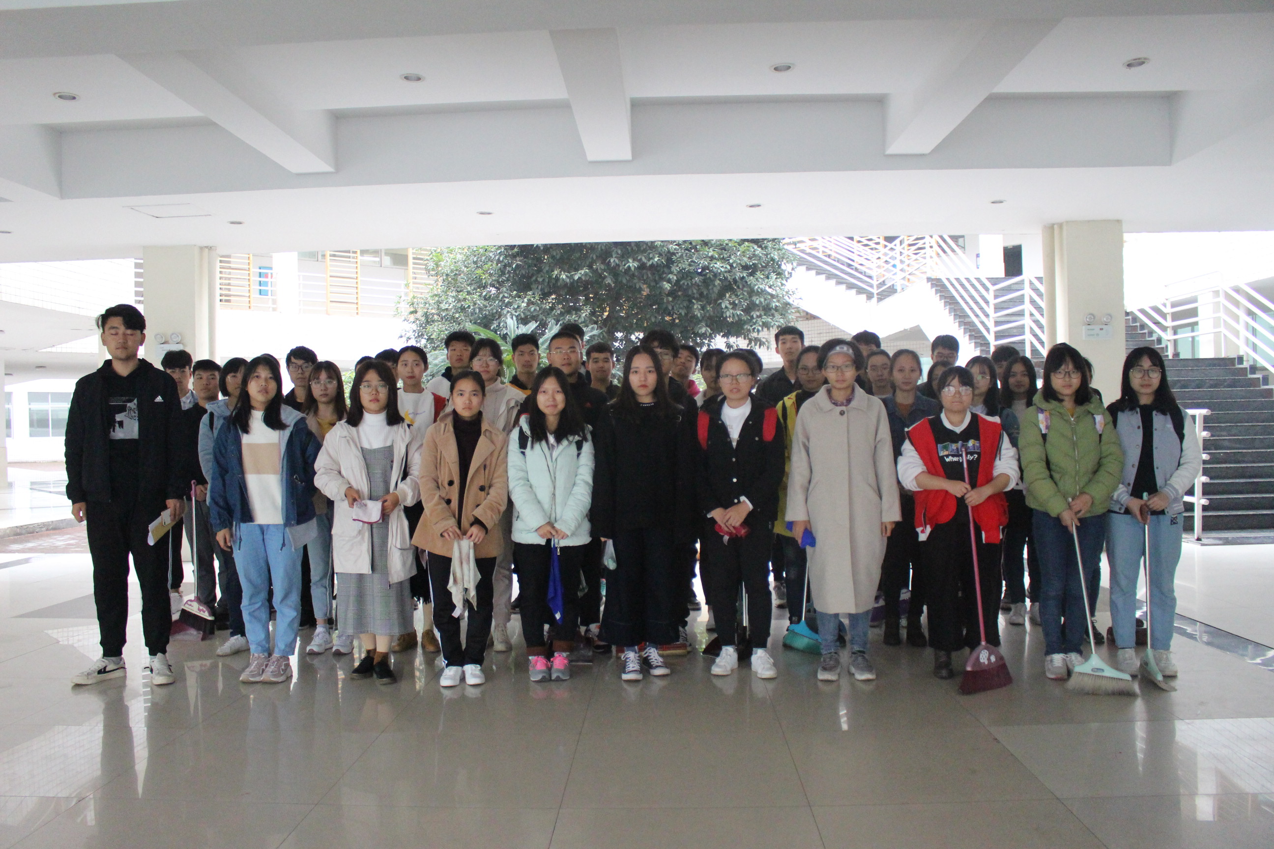 本次活动员工自带打扫工具于15110教室集合,参加实践的员工分工明确,相互配合,井然有序、高质量高效率地开展清洁工作,对15栋一楼与二楼教室的地面、黑板、抽屉与讲台进行全方位清理。