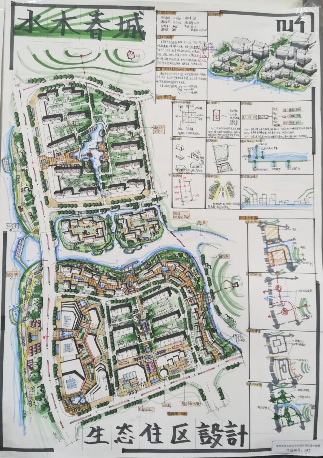 永利集团304官网选手阳煜瑾的方案是根据分期建设的经济性和可行性,规划取地为西北角连续两块用地,此地块依山傍水,景观优越,以开放式街区为形式划分小地块,以景观渗透和景观廊道为条件建立宜人空间,正确布置商业、公共服务设施位置。选手王苗的方案注重绿色生态发展,打造“水木春城”:水—滨水空间、木—山体通廊、春—生机活力、城—有机生长,其功能主要以居住为主,配套相关服务设施,以“体验、空间;功能、有机;效率、活力”为三大策略进行方案设计,形态活泼,景观渗透性较好,重点突出了生态与可持续发展。