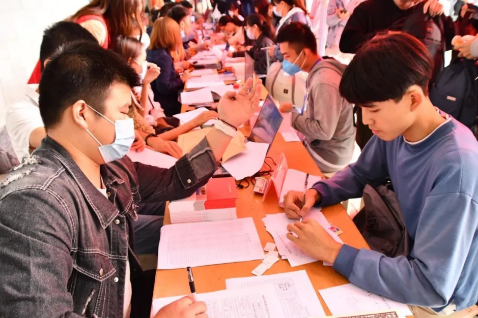 随后,陆陆续续到来的新生,让报道现场逐渐热闹起来了。助班和志愿者们耐心引导新生完成入学登记和注册等相关手续。9月的细雨带来一丝微凉,但员工们仍然热情高涨。为确保迎新工作顺利开展,超越工作室和员工党支部也成立了迎新服务台,志愿者们积极主动引导新生完成报到注册,耐心地为新生解答疑惑,本着全心全意为同学服务的宗旨,充分发挥出模范带头作用。报道现场人山人海,但一切都是那么的秩序井然。