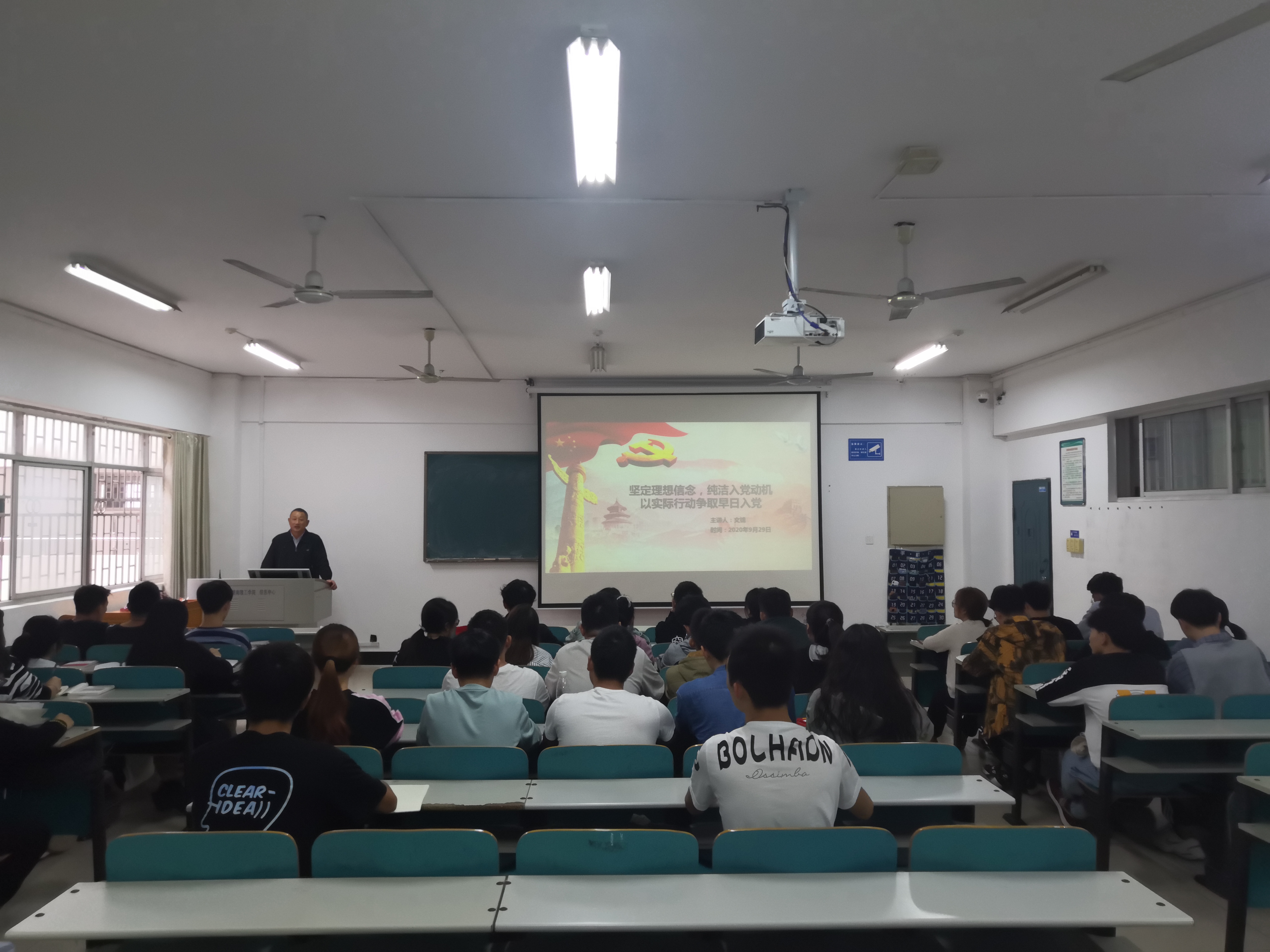 首先,钟铭金宣读了培训班教学计划,并强调了相关课堂纪律。辅导员罗家齐宣读了学员守则、评选条件及相关程序。开班仪式结束后,文锦书记进行党课第一讲,围绕“什么是正确的入党动机”、“为什么要端正入党动机”、“如何在学习生活工作中不断纯洁入党动机”以及“积极创造条件早日加入党组织”四个方面进行阐述,他希望入党积极分子自觉加强党性锻炼,加强党的理论知识学习,努力学好专业,提高自身素质,不断增强为人民服务的意识和本领,创造条件争取早日加入党组织。