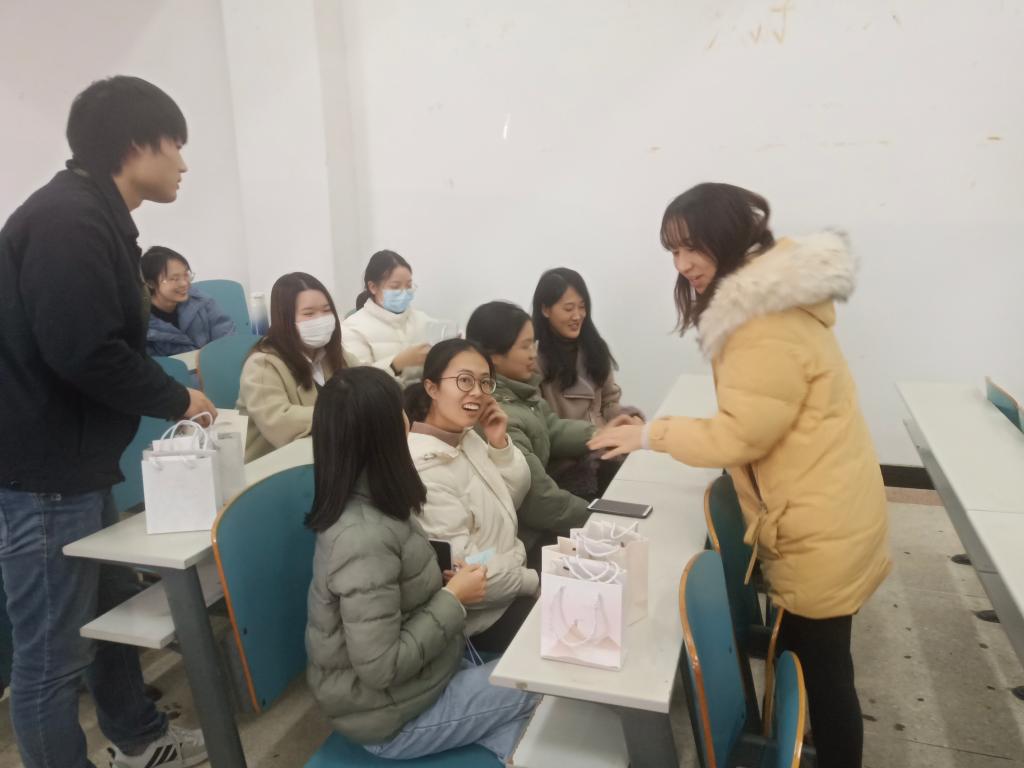 最后,华蓉为考研员工送上贺卡,为同学们加油鼓劲。罗家齐为员工发放餐券,进一步叮嘱考试注意事项,并预祝员工考研成功。(撰稿/罗子涵)