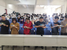 “有一面旗帜飘扬在百年征程,它深深的印在了一代代国人心中!用科技的力量驱散落后,用扎实的步伐再次出征!是中国共产党的党旗,指引着我们去实现辉煌的——中国梦!”初心是起点时心怀的承诺与信念,是困境时履行的责任与担当,回望中华民族走向伟大复兴的历史起点,更能深刻感受党初心跳动的强劲脉搏。土建学子以饱满的精气神诵读党的百年征程,顷刻间荡气回肠。