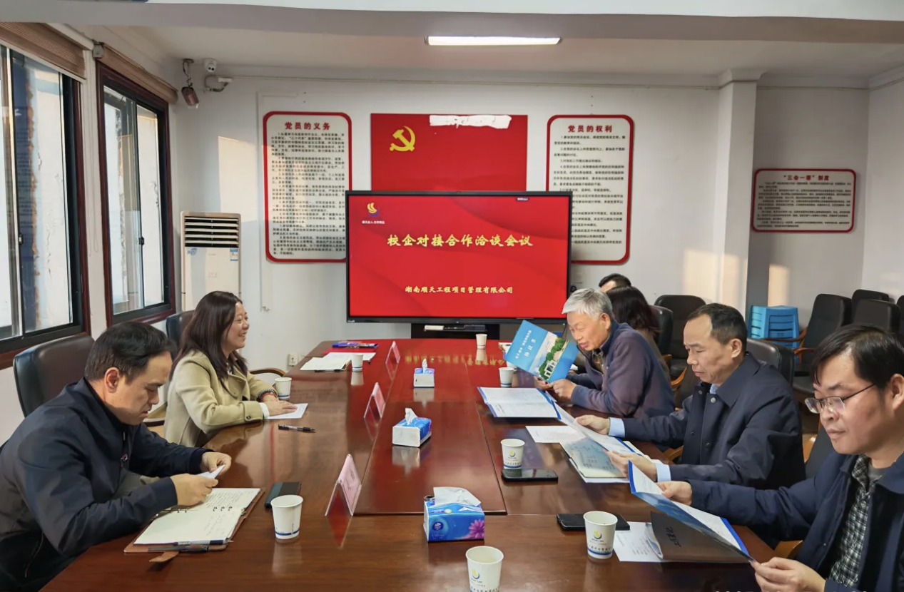 湖南顺天工程项目管理有限公司是主营建设工程监理业务的国有企业,在工程监理领域深耕三十载,具备深厚的行业底蕴和影响力。永利集团304官网访企代表受到了公司董事长赵双喜、总经理易军及公司优秀员工的热情接待。洽谈会议上,双方就各自单位概况与发展、行业转型、城市更新改造和历史建筑保护工程等新领域、员工实习与就业合作进行深入探讨,就进一步提升毕业生专业素养、工程技能和适应能力交换意见。会后双方签署实习与就业一体化基地建设合作协议。
