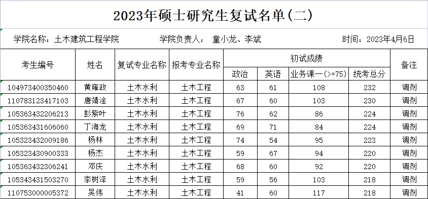 (2)初试统考科目与调入专业初试科目相同、业务课二科目为“结构力学、材料力学或土力学”的考生优先。